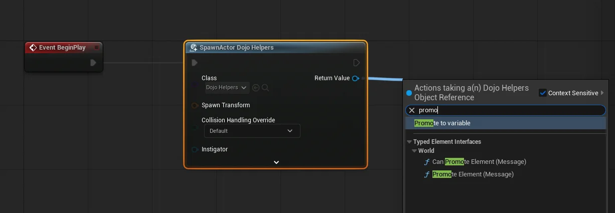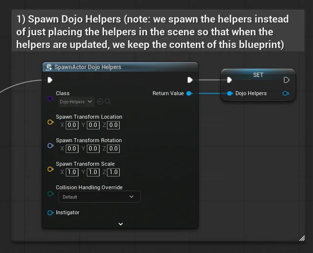 3. Initialize the DojoHelpers actor and store it as a variable unrealspawnactor